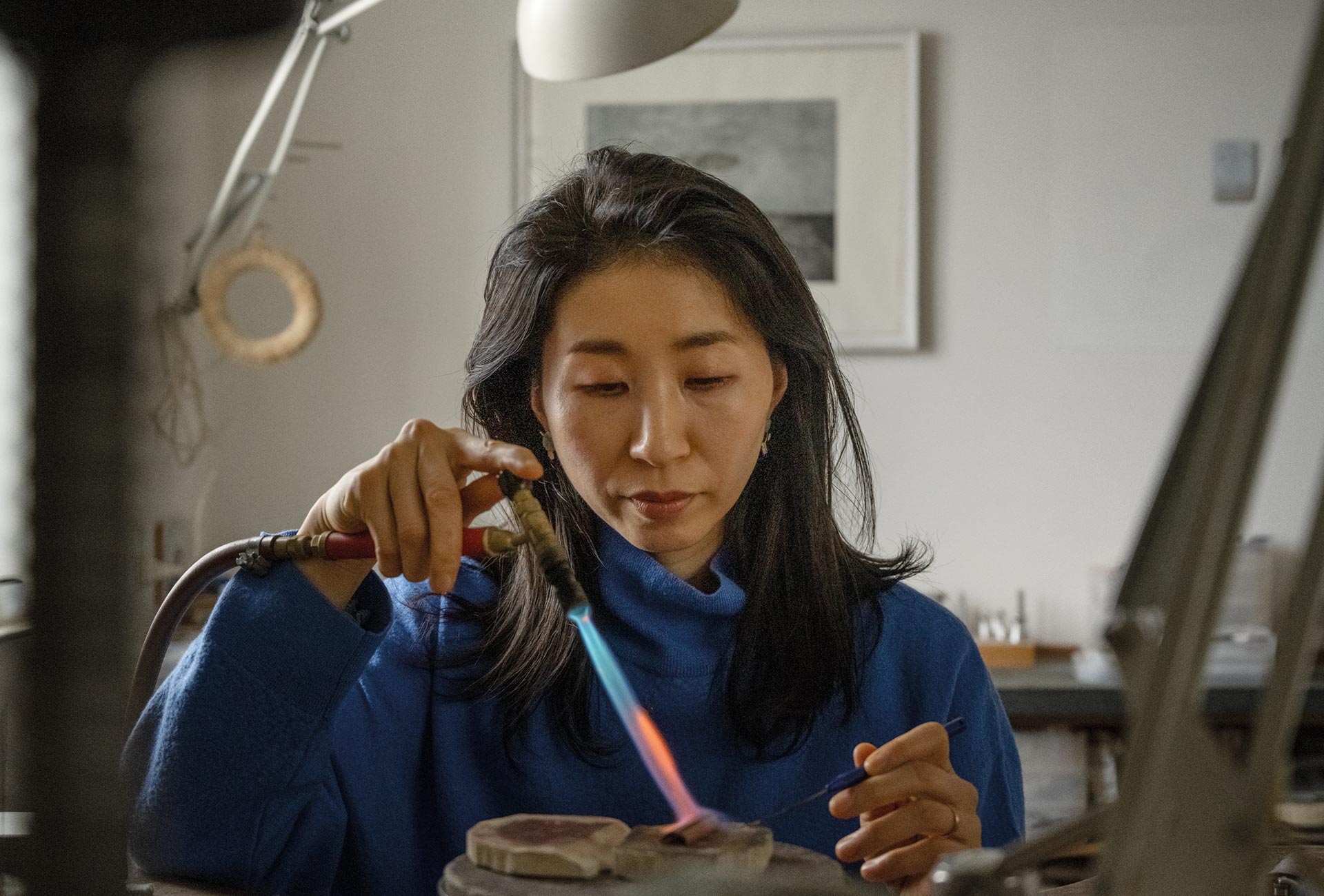 Kaori Juzu, Japan/Denmark, working on her enamel jewelry. Participant at Handwerk & Design, Munich 2026. © Kaori Juzu.